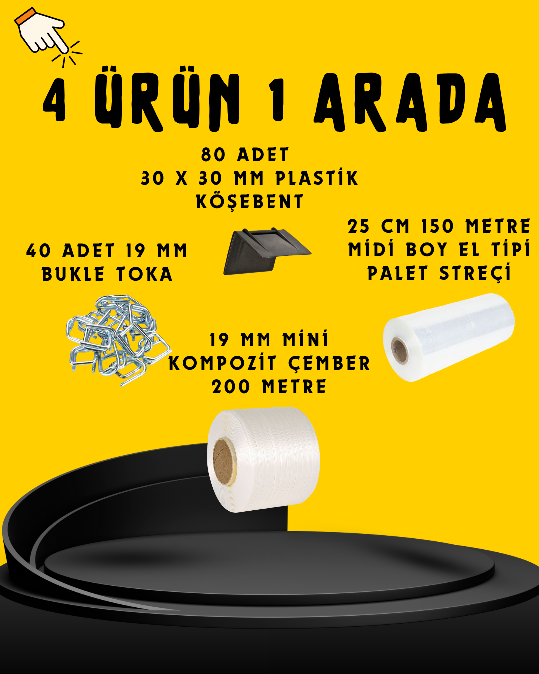 Özellikle mermer, kereste, parke ve metal sektörlerinde paletlerin güvenle sevkiyatı için tasarlanmıştır. Yüksek mukavemetli kompozit çember ile ağır yüklerde maksimum güvenlik sağlar.